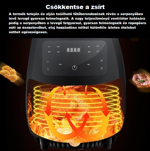 NONA extra nagyméretű LCD kijelzős Air Fryer – 6 L – 2400 W – olaj nélküli sütő (BBV)